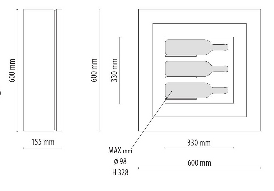 Модель Quadro Vino № 30 - это охлаждаемый стенд в стильной рамочке, рассчитан для трёх бутылок в горизонтальном положении.