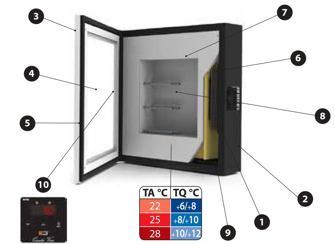 Стенд охлаждается при помощи бесшумной и вентилируемой системы, охлаждение снабжено функцией автоматической разморозки, которая не требует технической поддержки.